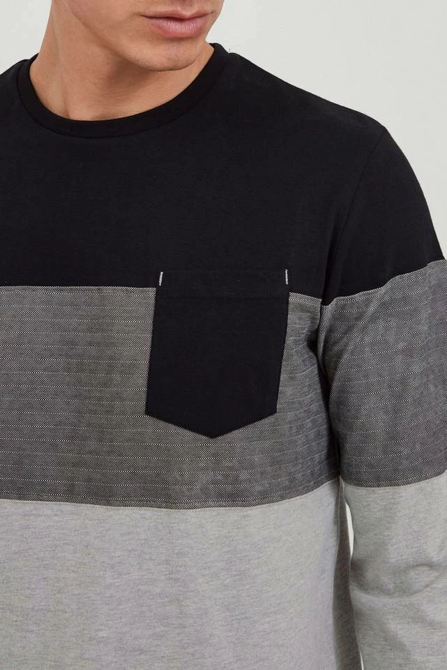 DETAILS & HIGHLIGHTS: Longsleeve im Colorblock Design, abgesetztes Material in der Mitte mit feiner Struktur, eine Brusttasche auf der linken Seite, Stoff Patch am unteren Saum, angenehm weiches und hochwertiges Material.