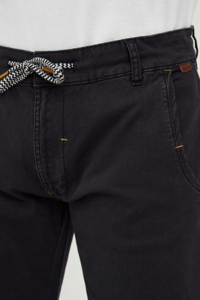 - DETAILS & HIGHLIGHTS: Elastische und strukturierte Baumwollqualität, Bund mit Gürtelschlaufen sowie mit Knopf- und Reißverschluss und einem Kordelzug mit Schlaufen (farblich abgesetzt, gemustert), 5- Pocket Taschenstil, zwei Eingriffstaschen, eine Münztasche (Coin Pocket), zwei Gesäßtaschen (Paspeltaschen), gekrempelte und fixierte Beinabschlüsse, farblich abgesetzte Nahtdetails, Kunstlederbadge über Eingriffs- und Gesäßtasche