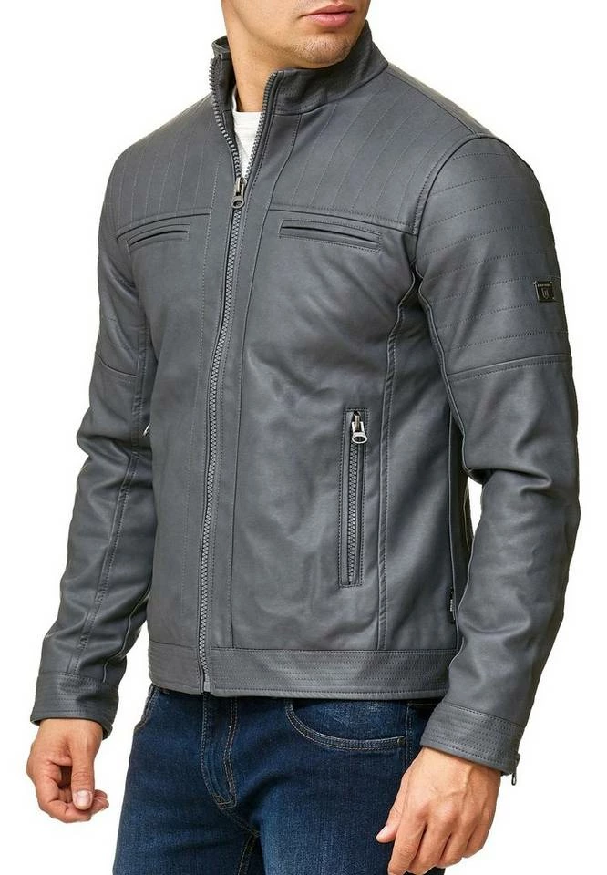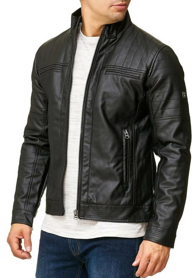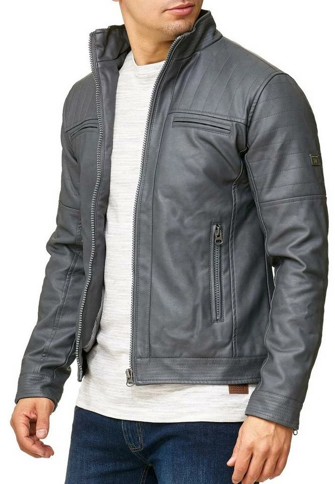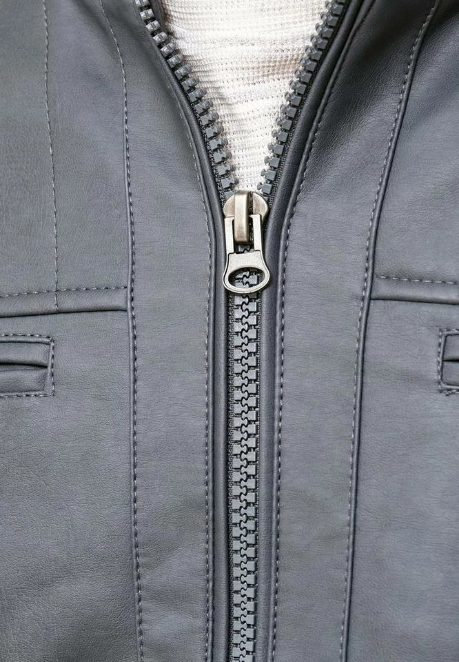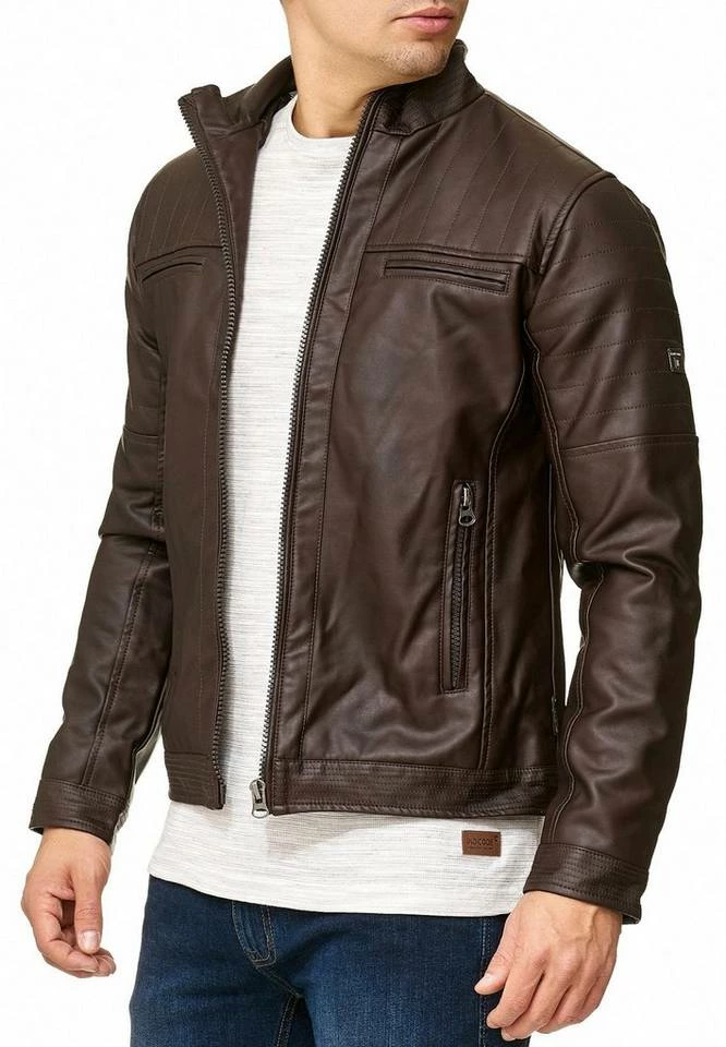Die Kunst Lederjacke von Indicode mit Reißverschluss und Stehkragen ist vielseitig kombinierbar. Trage sie für einen modischen Freizeitlook beispielsweise zu einem Basic-Shirt und Jeans.
