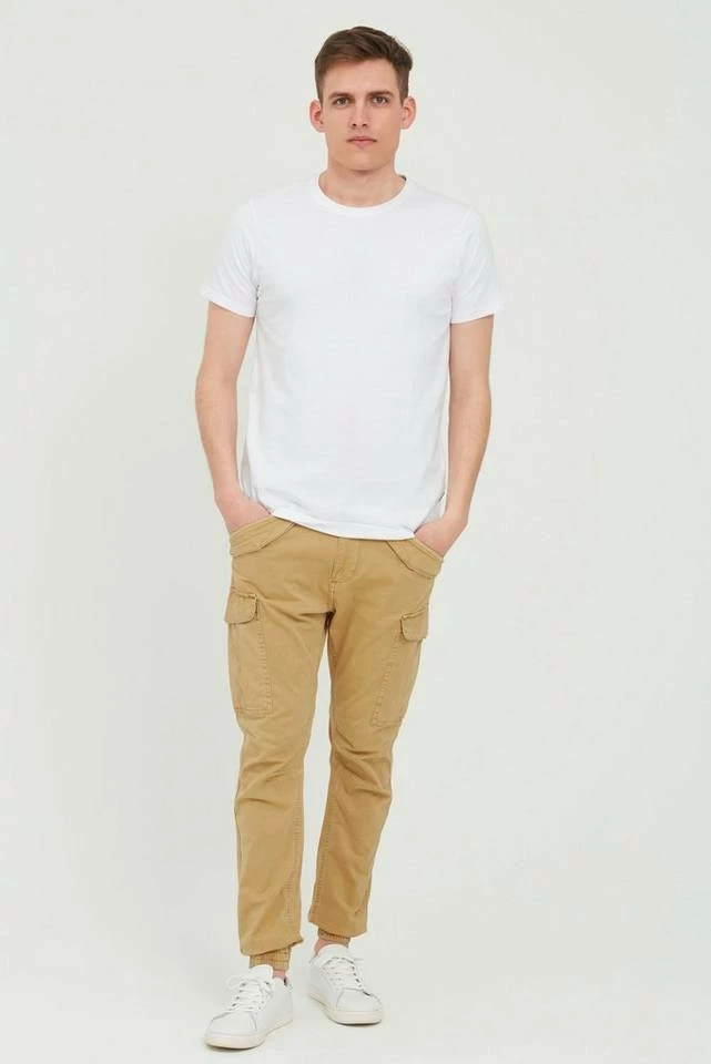 DETAILS & HIGHLIGHTS: Cargohose mit elastischen Bündchen an den Beinenden und am Bund, Regular Fit, Verschluss mit Knopf und Reißverschluss, aufgesetzte Cargotaschen an den Beinen mit Druckknöpfen, zwei Eingriffstaschen mit Zierlache und zwei Pattentaschen mit Druckknöpfen auf der Rückseite, Stoff Patch über der rechten Gesäßtasche, angenehmes und bequemes Material mit Stretch-Anteil