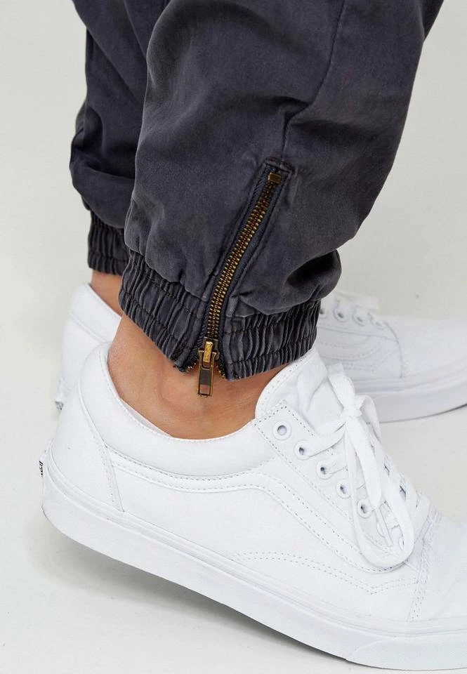 Besondere Merkmale: Tapered-fit Style durch die coolen Teilungsnähte. Die elastischen Beinenden werden durch die glänzenden Reißverschlüsse zusäztlich betont.