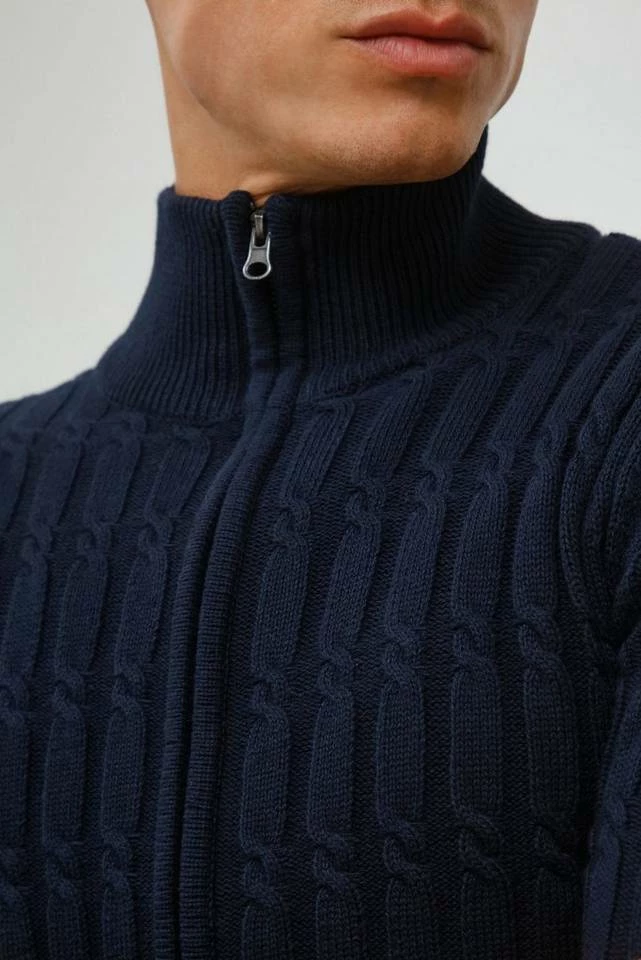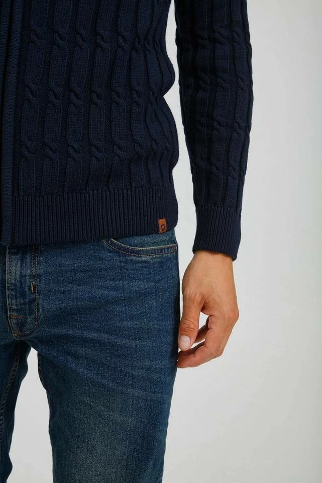 DETAILS & HIGHLIGHTS: Grobstrick Jacke mit Zopfstrick Muster, Verschluss mit verdecktem Metall-Reißverschluss, hochabschließender Stehkragen, elastische Ripp-Bündchen an den Säumen, Kunstleder Patch am unteren Saum, angenehm weiches und hochwertiges Baumwoll Material