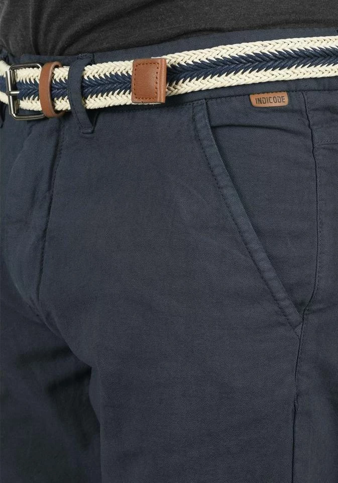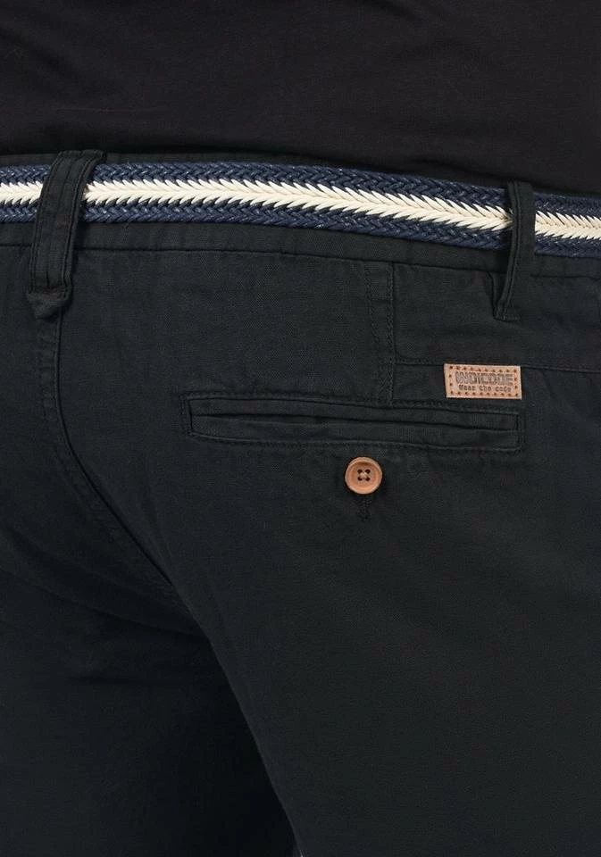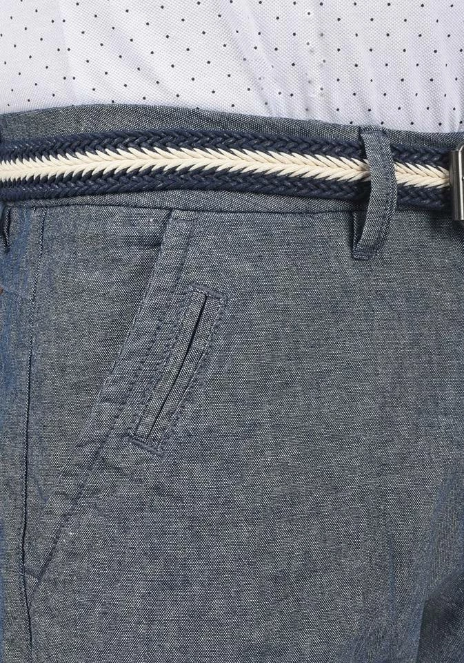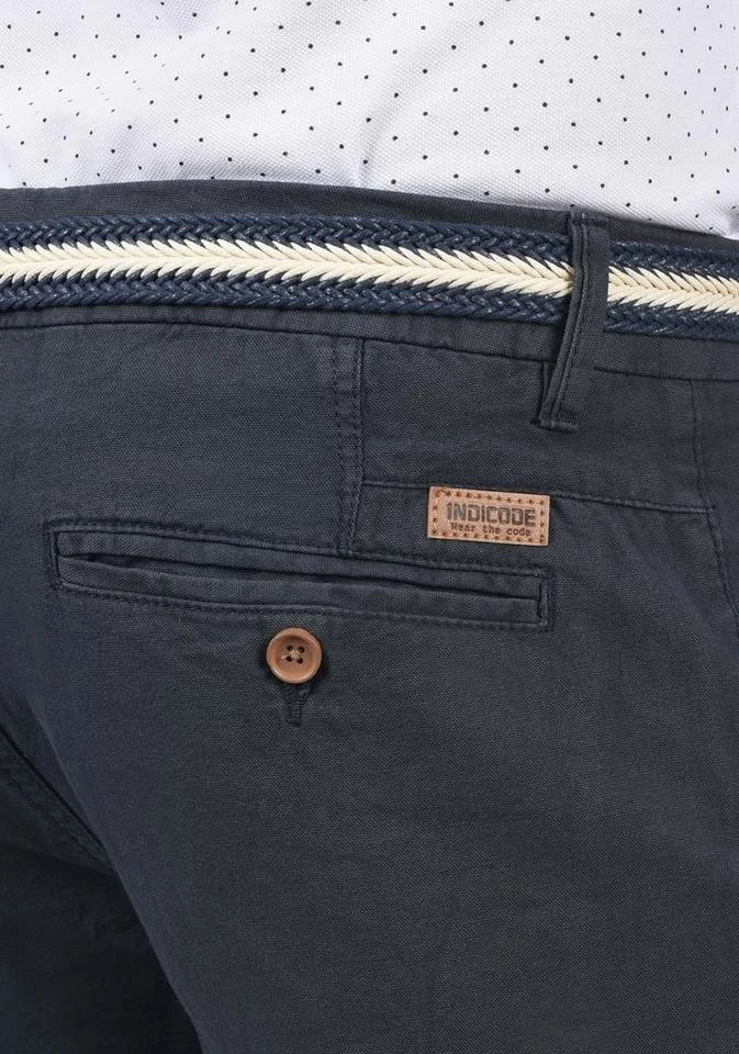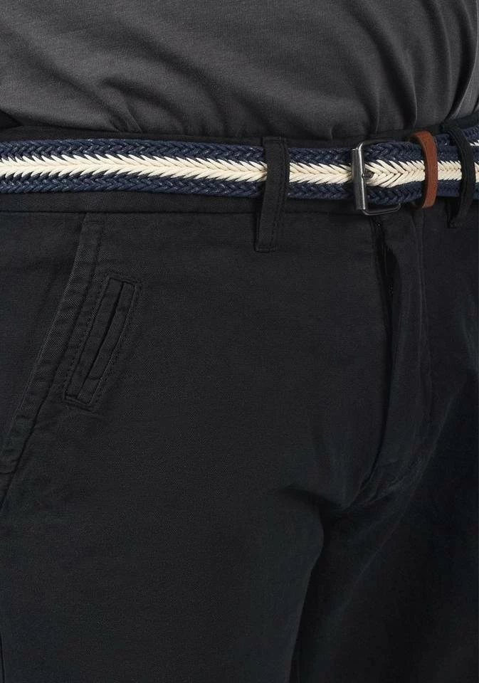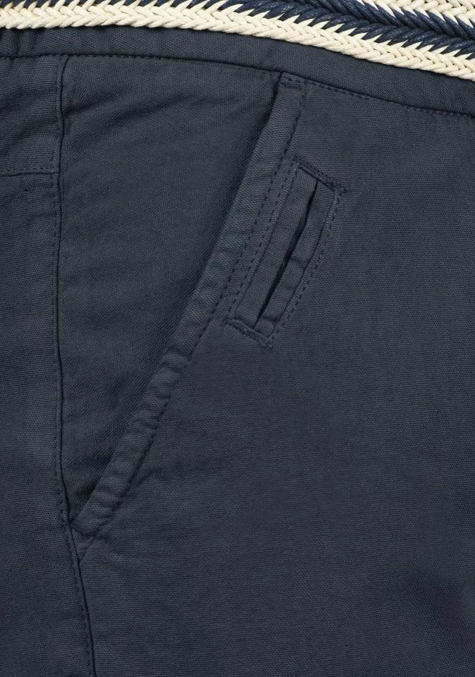 DETAILS & HIGHLIGHTS: Bund mit klassischen Knopf- und Reißverschluss sowie Gürtelschlaufen mit geflochtenem Stoffgürtel in zwei kontrastierenden Farben, praktische Eingriffstaschen (eine davon mit Coin-Pocket) sowie Gesäßtaschen mit Holzknöpfe, Kunstlederpatch am hinterem Bund und an der vorderen Eingriffstasche, Hosenbeine zum hochkrempeln