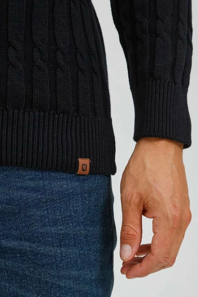 DETAILS & HIGHLIGHTS: abgesetztes Zopfstrick Muster, angenehm und hochwertiges Baumwoll-Material, Kunstleder-Patch am unteren linken Saum, gerippter Abschlussbund sowie Ärmelbündchen