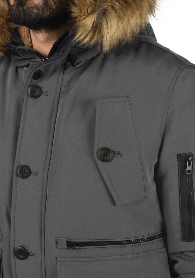 DETAILS & HIGHLIGHTS: Wattierter Parka mit Tunnelzug und abnehmbarem Kunstfell, Kapuze mit Teddyfell-Füllung, gestepptes Innenmuster, hochabschließende Kapuze, eine Innentasche, Pattentaschen (Druckknopf) mit integrierten Eingriffstaschen, Taschen oberhalb der Pattentasche (Reißverschluss), Brusttaschen mit Knopf, versteckter Reißverschluss mit Knopfleiste, Tasche mit Reißverschluss am linken Oberarm, Stoff-Patch an der linken Seite, Gummi-Patch auf dem rechten Oberarm, geripptes Armbündchen und Abschlussbund