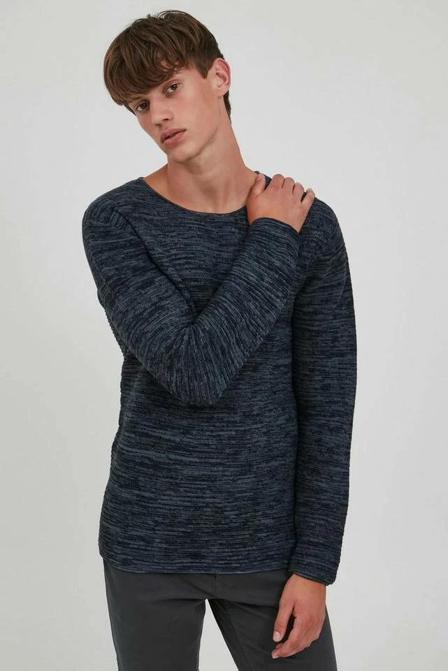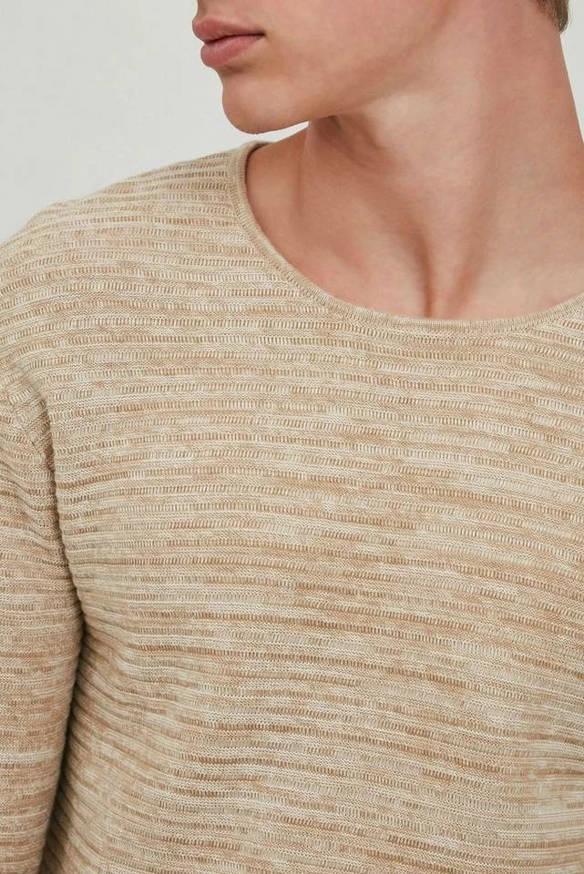 DETAILS & HIGHLIGHTS: Feinstrick Pullover mit Rundhalsausschnitt, zweifarbige Melierung, angenehm weiches und hochwertiges Material mit Struktur, aufgerollte Säume an den Ärmeln und am Bund, Stoff Patch am unteren Bund.