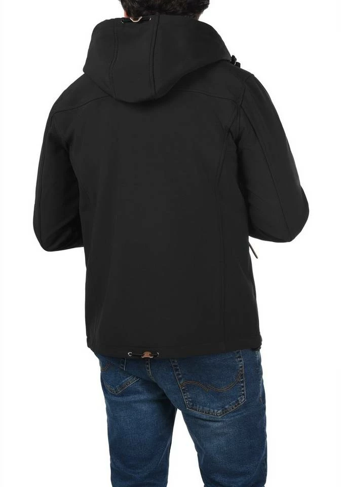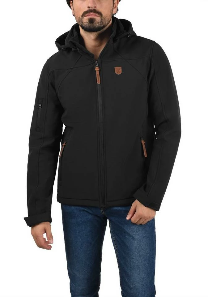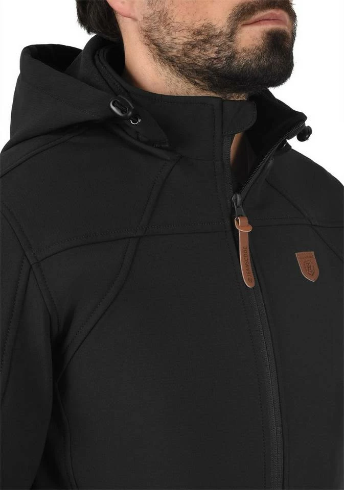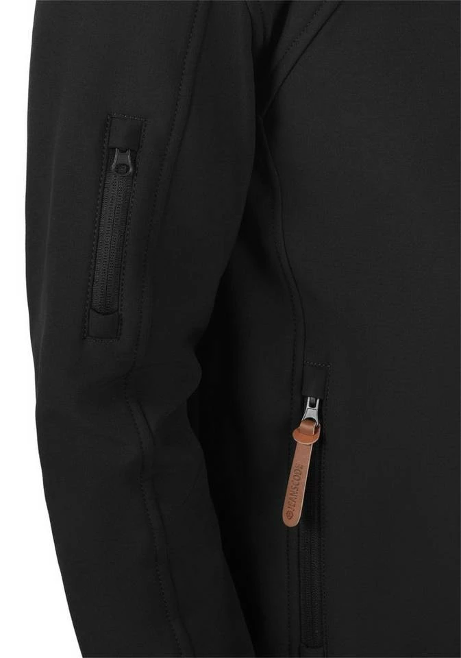 DETAILS & HIGHLIGHTS: Wasserabweisendes Softshell Material mit Fleece gefüttert, hochabschließender Kragen mit Kinnschutz, abnehmbare Kapuze mit Gummizug zum Verschließen, zwei seitliche Eingriffstaschen sowie eine Ärmeltasche (Reißverschluss) mit Fleece gefüttert, Abschlussbund mit Gummizug im hinteren sowie seitlichen Bereich, verstellbarer Ärmelsaum mit Klettverschluss, Kunstleder-Logopatch im Brustbereich sowie zahlreiche Kunstleder-Applikationen