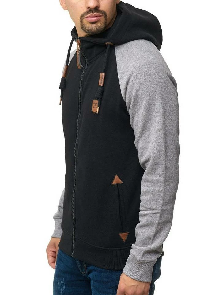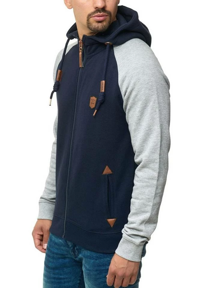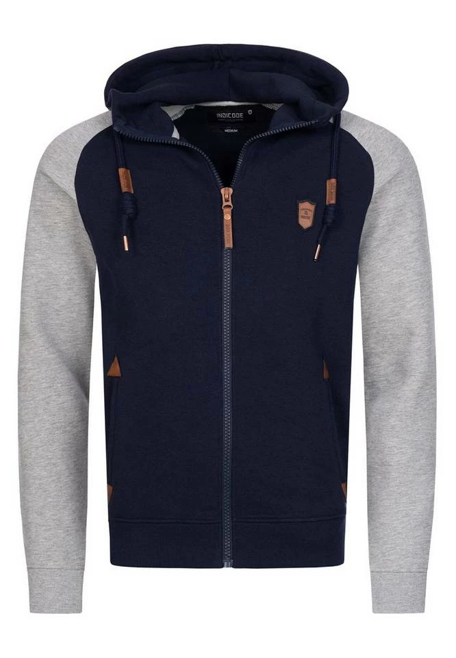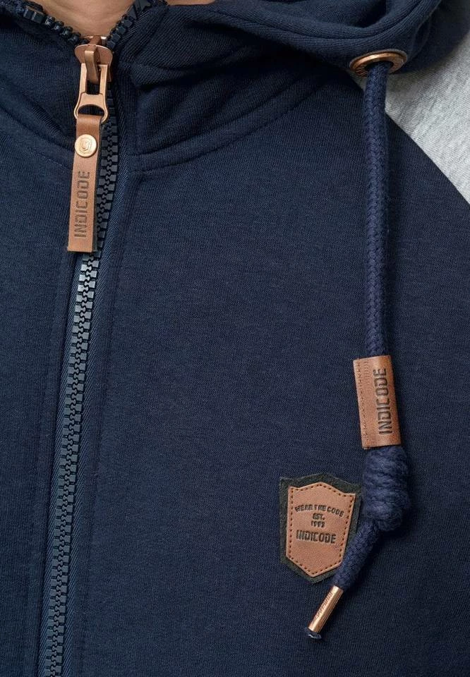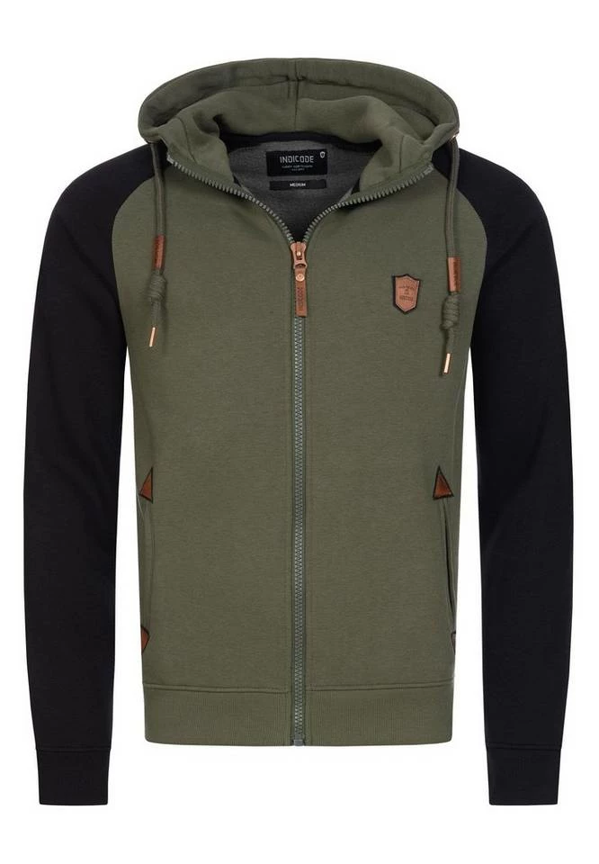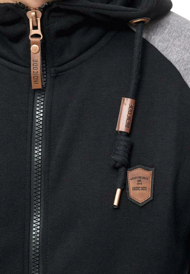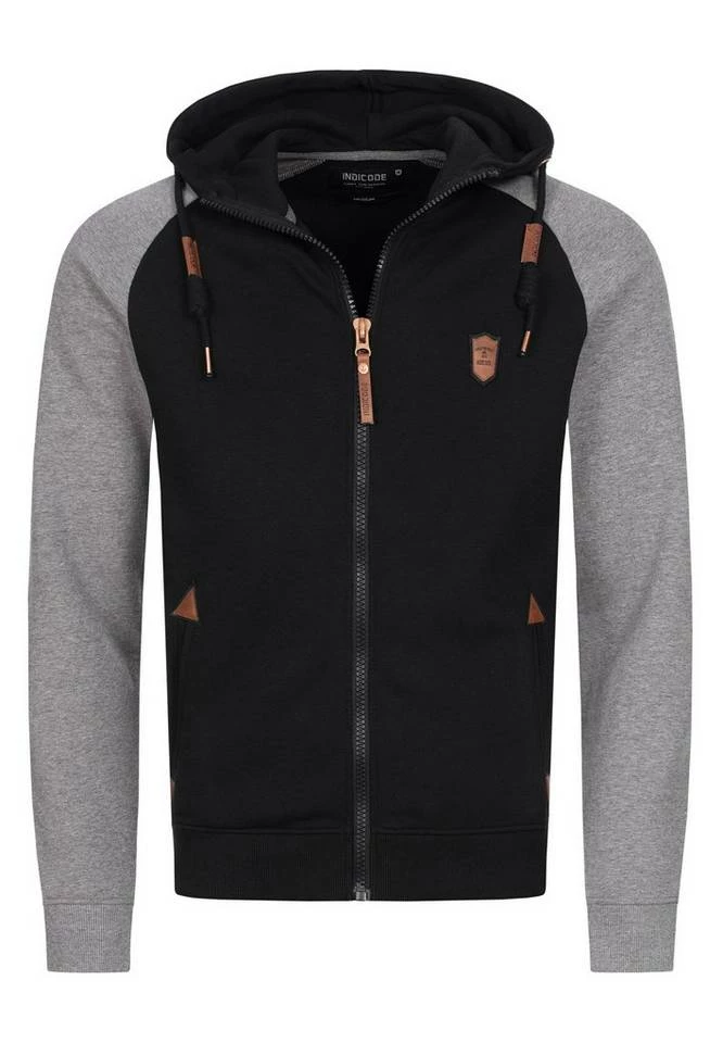 - Die neue Kapuzen-Sweatjacke von INDICODE mit kontrastfarbenen Raglanärmeln ist ein absoluter Hingucker