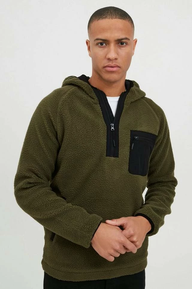 DETAILS & HIGHLIGHTS: Teddy Hoodie mit Kapuze, hochabschließender Kragen, Mesh-Füllung im Innenbereich und in der Kapuze, angenehm weicher Tragekomfort, zwei seitliche Eingriffstaschen, Brusttasche mit Reißverschluss, Reißverschluss bis Brusthöhe, zahlreiche Gummi-Applikationen an den Reißverschlüssen, Stoff-Patch an der Seite, elastische Ärmelbündchen