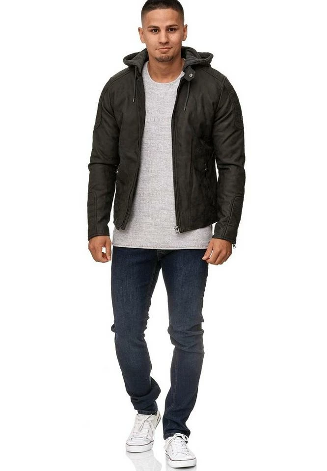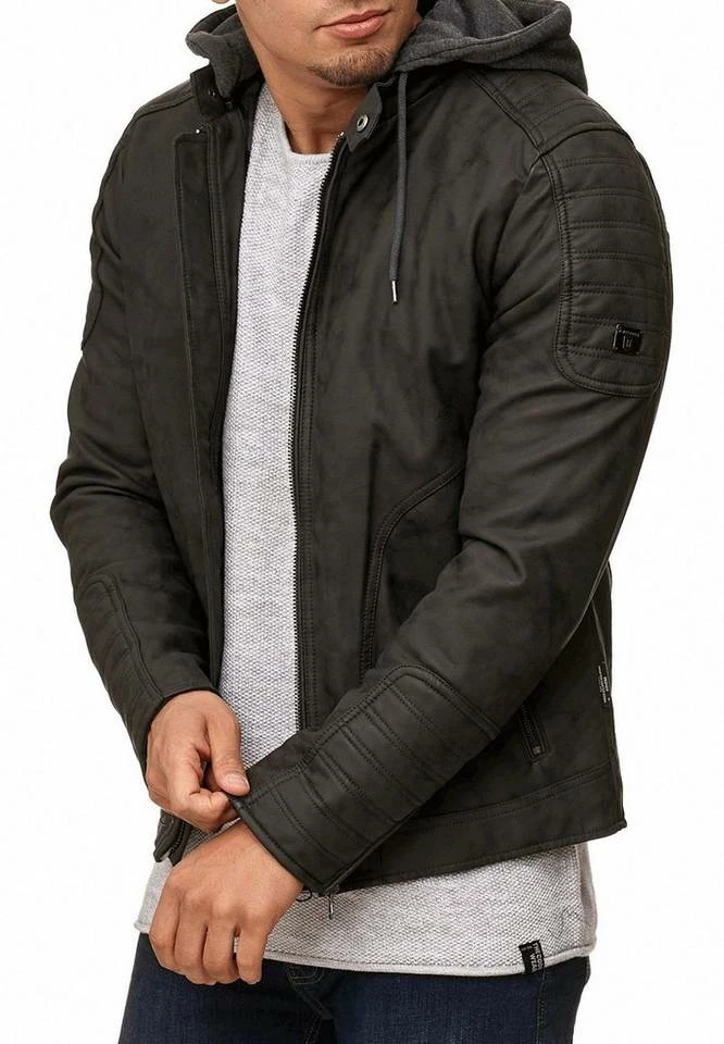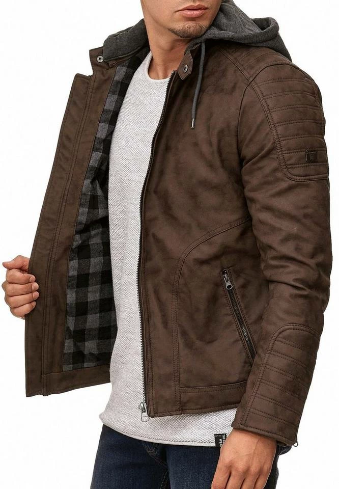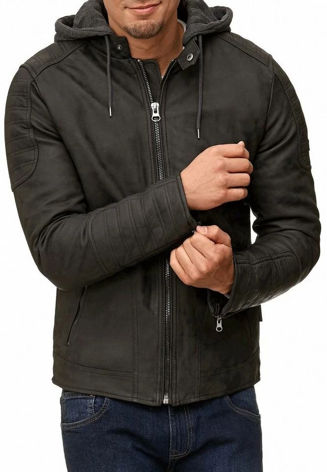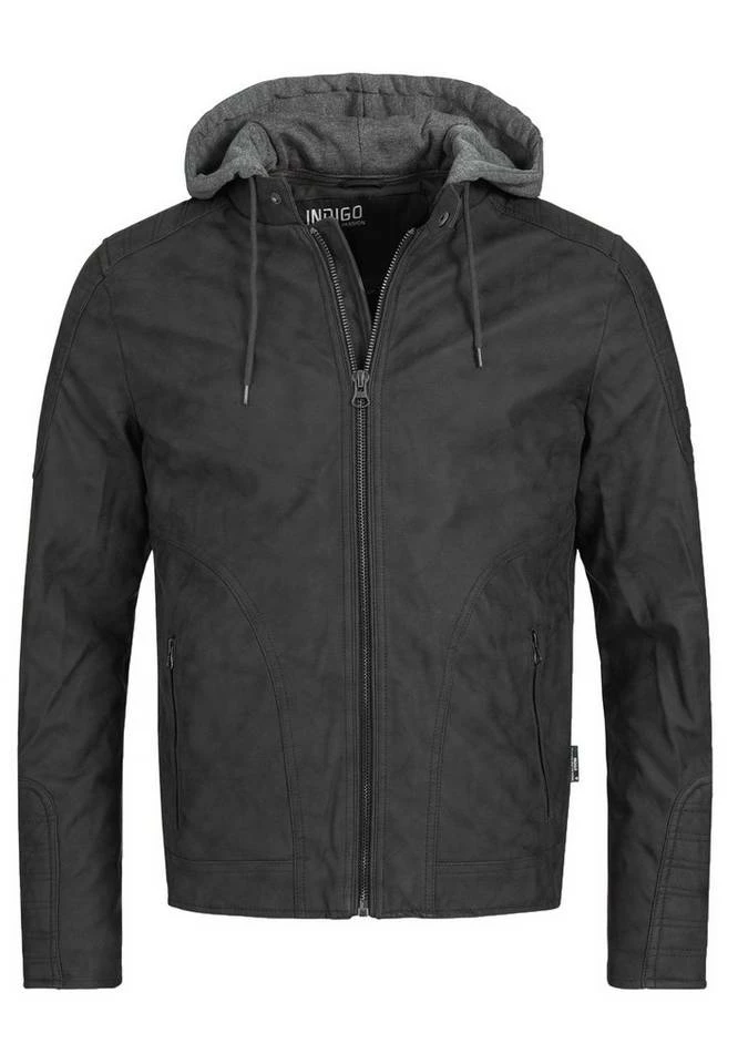 Klassisch und sportlich zugleich präsentiert sich die Herren Kunstlederjacke von INDICODE – Die robuste Herrenjacke mit Kapuze punktet durch das sportliche und zugleich rockige Design mit angesagten Biker-Elementen und der abnehmbaren Kapuze.
