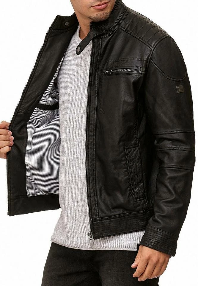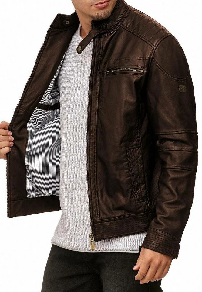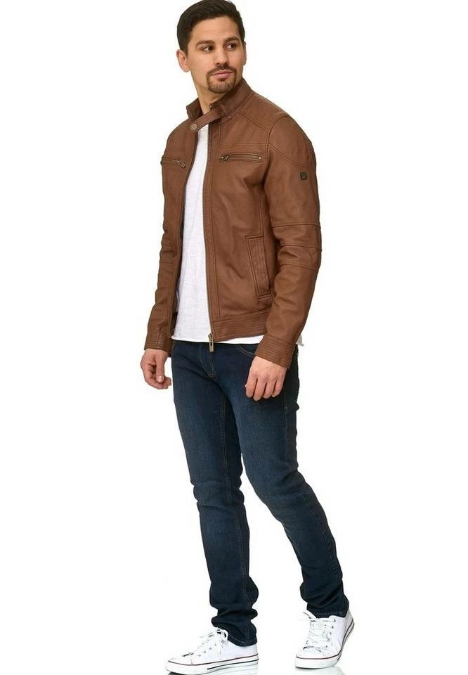 Diese Lederjacke aus dem Hause INDICODE vereint Style und hochwertige Verarbeitung besonders raffiniert. Denn dank des Stehkragens mit Riegel, den Zipperbrusttaschen und den seitlichen Eingrifftaschen sowie den zahlreichen Ziernähten bekommt die Lederjacke einen coolen Bikertouch verpasst.
