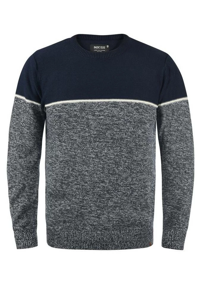 DETAILS & HIGHLIGHTS: Feinstrickpullover aus reiner Baumwolle, Verlauf in Melange Optik, Colorblock Design, Kunstleder-Patch am unteren linken Saum, gerippter Abschlussbund sowie Ärmelbündchen