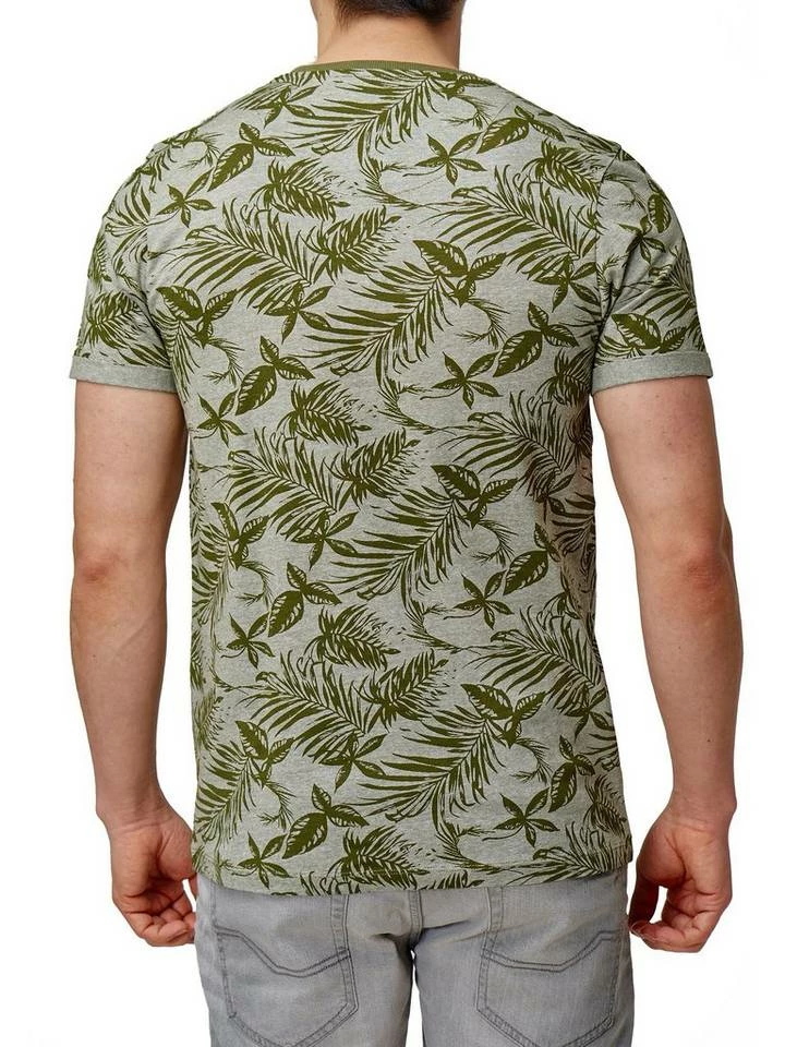 - DETAILS & HIGHLIGHTS: O-Neck, Hawaii-Print, farblich-abgesetzter Print, sowie farblich abgesetzte, gekrempelte und fixierte Ärmelabschlüsse, gerader Saum, Kunstleder-Logopatch